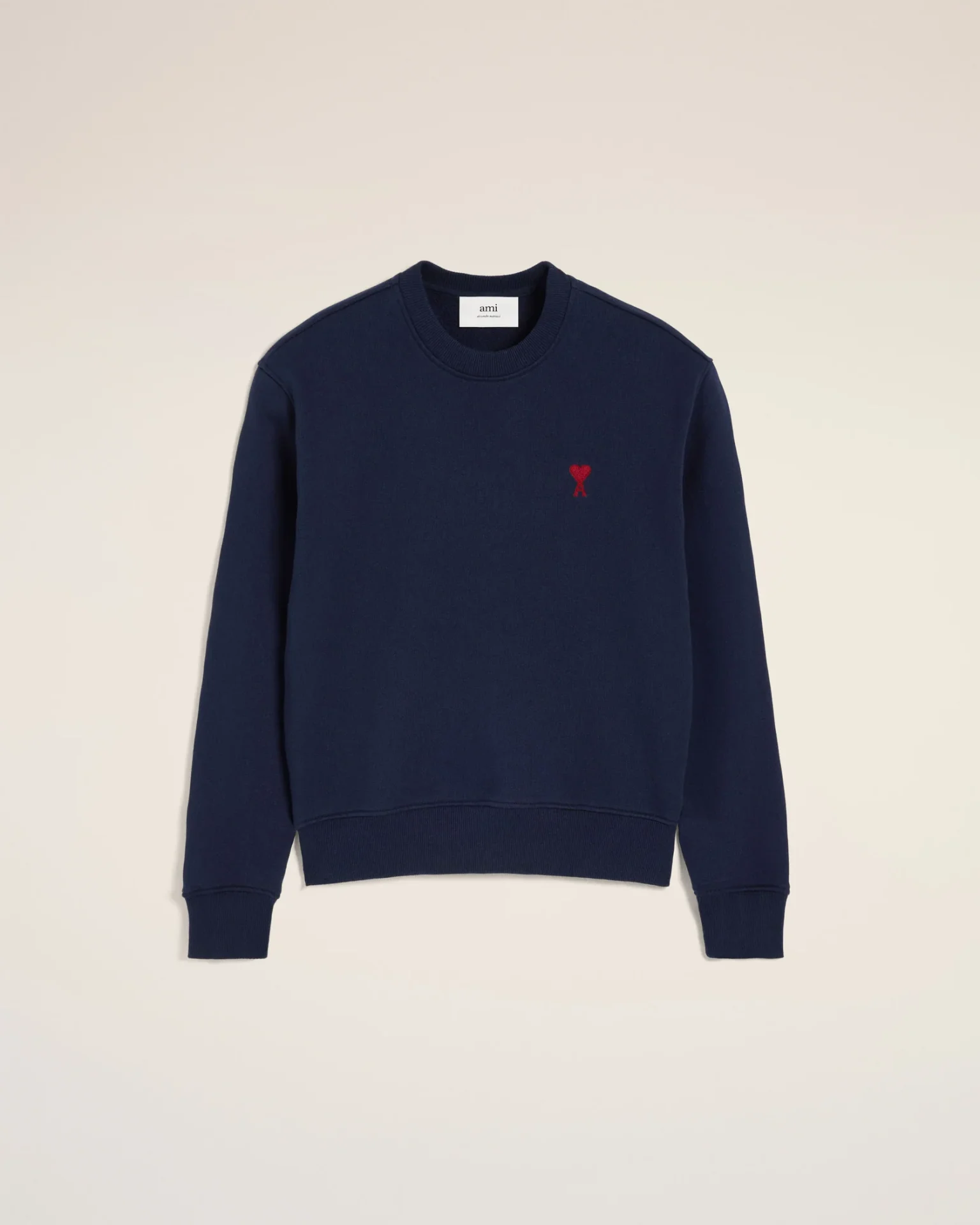 AMI Paris Navy Ami de Coeur Sweatshirtsurpasses classic Parisian style and everydaywear in one elevated piece. Crafted from soft, premium cotton, the Ami Paris Cloths sweatshirt fits relaxed and appears polished while being cozy. The famous emblematic Ami de Coeur heart is beautifully highlighted on the deep navy colour, Ami Paris Sweat Shirts giving a touch of refinement. Casual outings, layering or lazy weekends, it embodies the timeless craftsmanship of AMI and effortless cool.